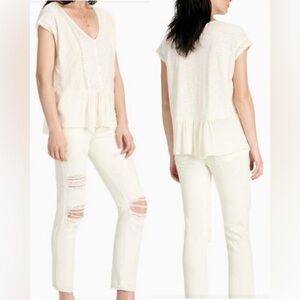 LUCKY BRAND Ivory Woven Embroidered Peplum Slub Knit Top Women’s Size Small