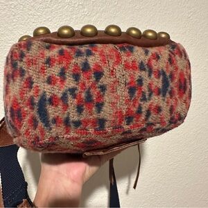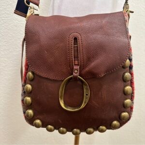 LUCKY BRAND Janis Wool Blend Leather Western Boho Flap Crossbody Studded Bag