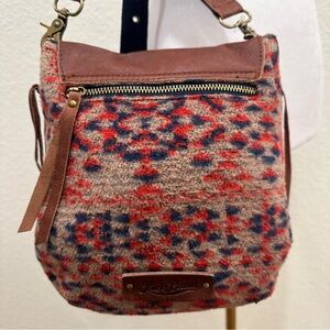 Wool Blend Brown Leather Southwestern Boho Flap Crossbody Bag adjustable abstract tribal western Cowgirl