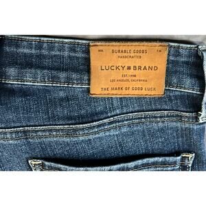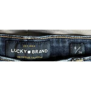 This is a pair of Lucky Brand women's skinny jeans in a size 6 with a 28-inch inseam. The jeans feature a raw hem design and are made from blue denim fabric. The style of the jeans is described as "AVA Skinny" from Lucky Brand. These jeans are designed for regular fit and are a classic wardrobe staple for women looking for a trendy and comfortable denim option.
