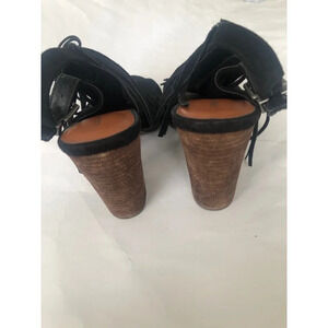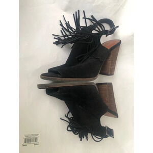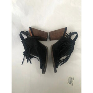 LUCKY BRAND LP-LIENNAH Suede leather Peep Toe Fringed Block Heel Bootie 7.5M Black.