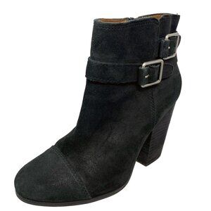 LUCKY BRAND Laureen Leather Buckle Accent Chunky Heel Booties