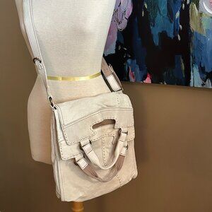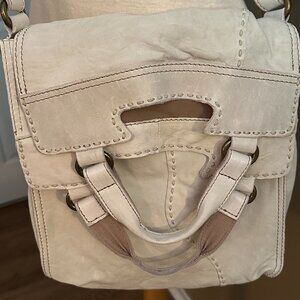 This soft and stylish Lucky Brand crossbody bag is crafted from premium Italian leather. Featuring both top handles and a long adjustable strap, it easily converts from crossbody to handheld. Its neutral tone and artisan-inspired details make it perfect for everyday wear with a touch of boho charm.