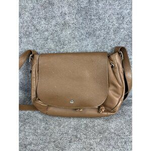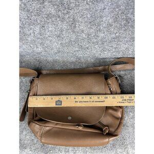 LUCKY BRAND Leather Crossbody Shoulder Bag Womens Brown Flap Drawstring Zip
