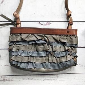 LUCKY BRAND Leather Small Crossbody Purse Metal Bronze Ruffles