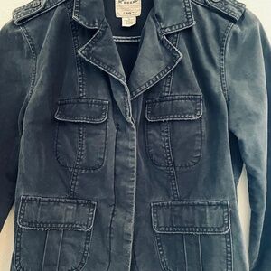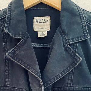 LUCKY BRAND Lightweight/Distressed Navy Cropped Jacket with Epaulets.