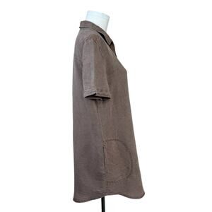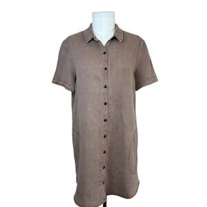 LUCKY BRAND Linen Blend Shirt Dress Tan Button Up Pockets Short Sleeve Sz XL