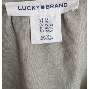 LUCKY BRAND Linen Tiered Sleeveless Mini Tunic Dress Sage Green Crochet Boho 2X