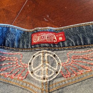 LUCKY BRAND Lucky Legend Peace Sign Wings and Stud Embellished Easy Rider Mid Rise Jeans 8/29L. These jeans are in very good condition - only worn a couple of times.