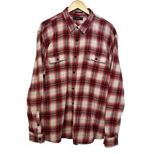 LUCKY BRAND Mens 2XL Red Plaid Button-Down Casual Cotton Classic Fit Long Sleeve