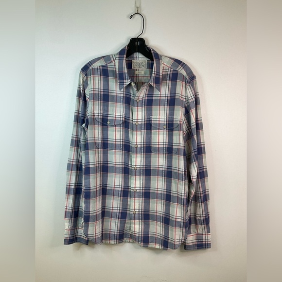 LUCKY BRAND Men’s Blue Green Plaid Long Sleeve Shirt Western Pearl Snap, sz SM