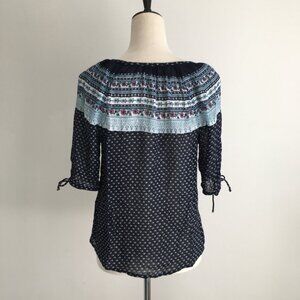 LUCKY BRAND Multi Color Mixed Print Tie Collar & Sleeves Shirt