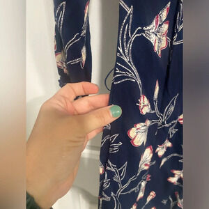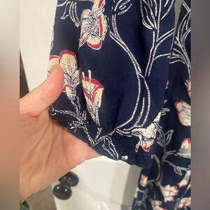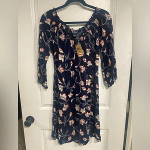 LUCKY BRAND NAVY FLORAL OFF SHOULDER DRESS PEASANT SMALL
