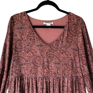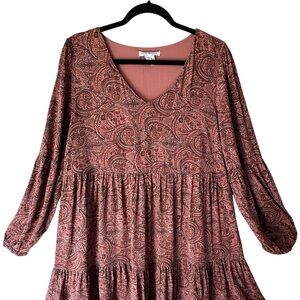 LUCKY BRAND | NWOT PAISLEY TIERED RUFFLE FLOUNCE BOHO MIDI LONG SLEEVES | MEDIUM