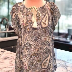 LUCKY BRAND NWT EMILIA WOMENS TOP BLOUSE SMALL BLUE PAISLEY FLORAL PRINT