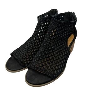 LUCKY BRAND Nacria Black Suede Peep Toe Ankle Booties Sandals Shoes Size 6.5M
