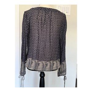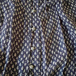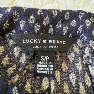 LUCKY BRAND Navy Print Button down Peasant Top