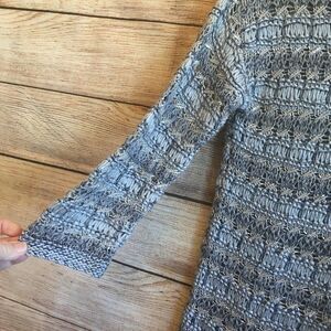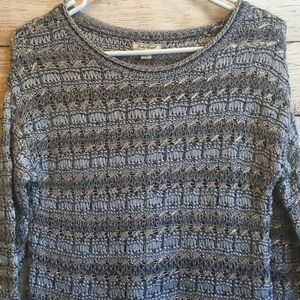 EXCELLENT CONDITION LUCKY BRAND OPEN KNIT METALLIC ACCENT SWEATER IN GRAY