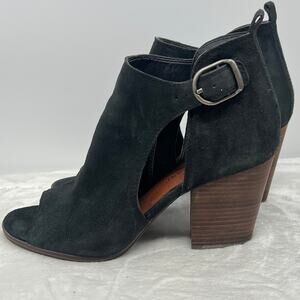 LUCKY BRAND Oona Black Suede Peep Toe Booties 9M
