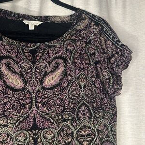 STYLE: Lucky Brand paisley crew neck flowy tee, super soft and light, 60% cotton, 40% Modal, slit in back at lower back