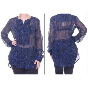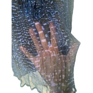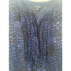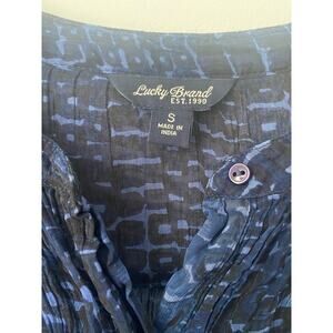 LUCKY BRAND PLEATED PRINT TOP BLUE/MULTI SEMI-SHEER SIZE SMALL