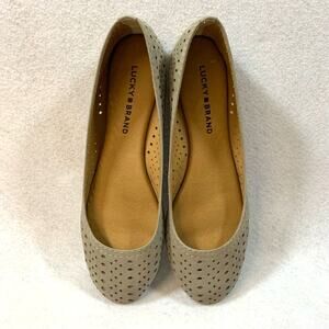 LUCKY BRAND Perforated Ballet Flats Sz 8.5 Tan Y2K Preppy Slip On