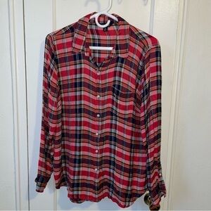 LUCKY BRAND Plaid Button Front Long Sleeve Tulip Back Blouse Top