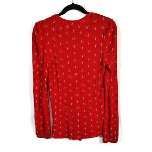LUCKY BRAND Red Boho LARGE Women's Long Sleeve Stretchy Keyhole Blouse