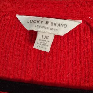 LUCKY BRAND Red Boho LARGE Women's Long Sleeve Stretchy Keyhole Blouse Shirt with hook eye front closure. 38" chest, 28" shoulder to front hem. This brand runs small, refer to measurements for fit. Material tag removed. Compare to $69 new!