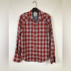 LUCKY BRAND Red Plaid Long Sleeve Button Front Shirt Chambray Lined, sz MD