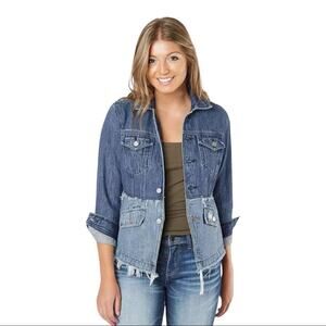 LUCKY BRAND Remade Distressed Denim Waisted Trucker Jacket Raw Frayed Hem XS