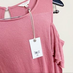 LUCKY BRAND Ribbed Ruffle Cold Shoulder Top