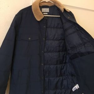 High quality heavy coat good for cold weather. Fits more like a large. Good to throw over a hoodie. Worn once!