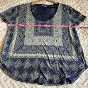 LUCKY BRAND Shirt Women’s L Navy Geometric Burnout Short Sleeve Boho Top Tee