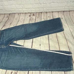 Cute Tomboy crop jeans from Lucky Brand. Good pre-owned condition! Barely noticeable— but there is some pulling/stretching near upper thigh area on one side. (See photo) Inseam is 28”.