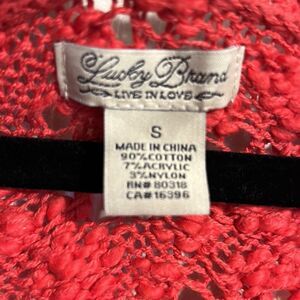 Size small Lucky Brand open crochet dark pink / coral tunic sweater. Long length is flattering. Sligth high low hem.