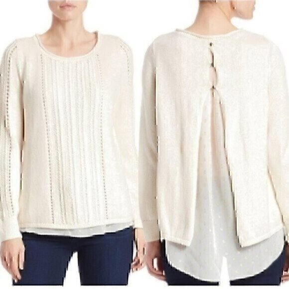 LUCKY BRAND Split Back Sweater Beige Cream Oatmeal Twofer Metallic Mixed Media S