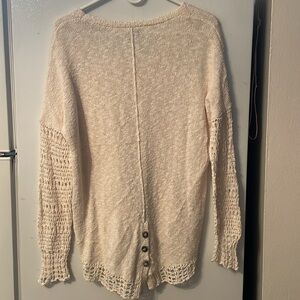 LUCKY BRAND Sweater Crème Crochet Open Knit Pullover Button BacK