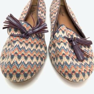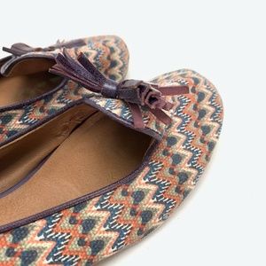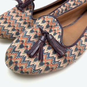 LUCKY BRAND Tassel Canvas Leather Flats Shoes 7.5
