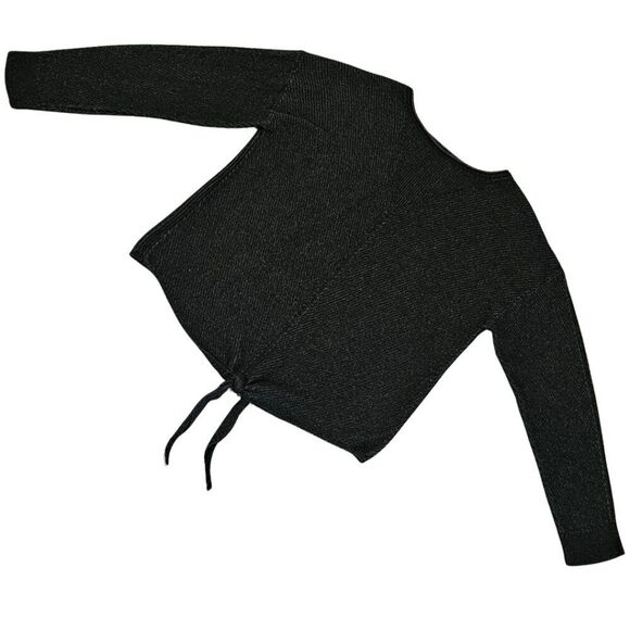 LUCKY BRAND Tie Front Women's Sweater Ribbed Long Sleeve Boxy Crewneck Size L