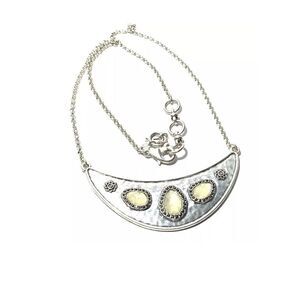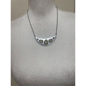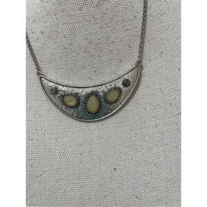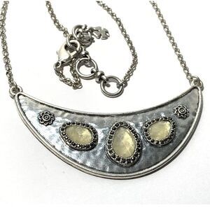 LUCKY BRAND Tribal CRESCENT BAR NECKLACE Faceted YELLOW Stones HAMMERED Silver