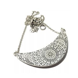 LUCKY BRAND tribal BOHO style crescent bar necklace, silver tone, hammered finish.