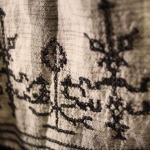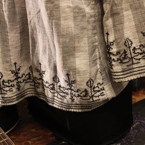 Adorable Tunic with embroidery at flared wrist and bottom.