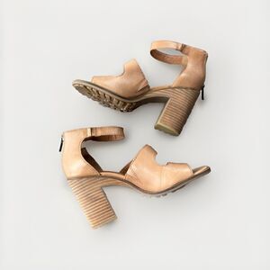 LUCKY BRAND VALKA Brown LEATHER HEELED SANDALS SIZE 9.5 Shoes Strappy