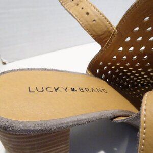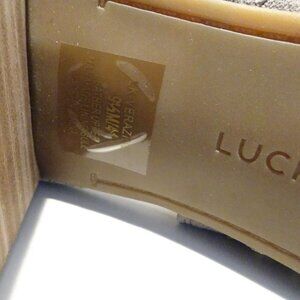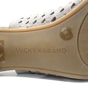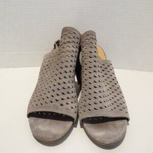 LUCKY BRAND Verazino Gray Perforated Peep Toe Heel Shoes Size 9.5 Leather Suede