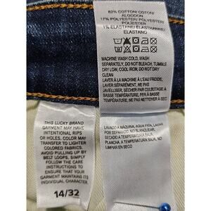 Description: Add a touch of bohemian charm to your wardrobe with these Lucky Brand women's mid rise crop Ava blue jeans! Made from a comfortable blend of 82% cotton, 17% polyester, and 1% elastane, these jeans offer both flexibility and durability. The mid-rise waist and cropped length provide a flattering fit that's perfect for any casual occasion. With a 14 waist and 32 inseam, they offer a stylish and polished look. Don't miss out on this versatile piece that's perfect for summer, fall, and spring!
