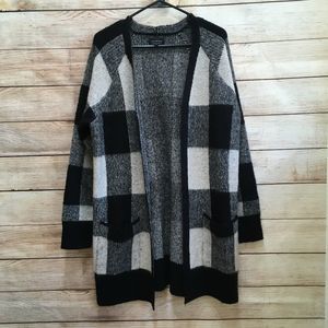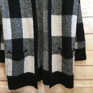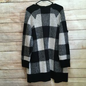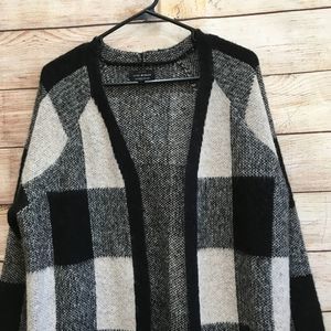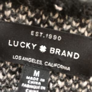 LUCKY BRAND WOOL BLEND BUFFALO PLAID SWEATER IN BLACK AND WHITE