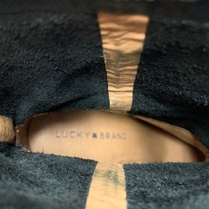 LUCKY BRAND Walwyn Black Nubuck Leather Heeled Booties