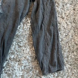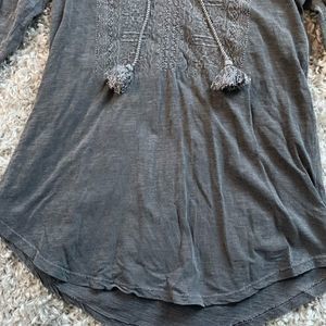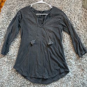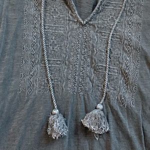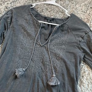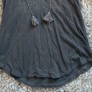 LUCKY BRAND || Woman’s gorgeous Bohemian Pom Pom ruffle charcoal top tribal