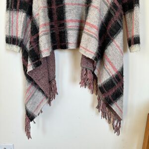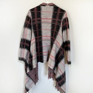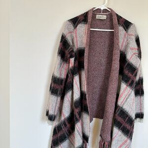 LUCKY BRAND Women MEDIUM Pink Wool Mohair Blend Brush Plaid Open Front Cardigan